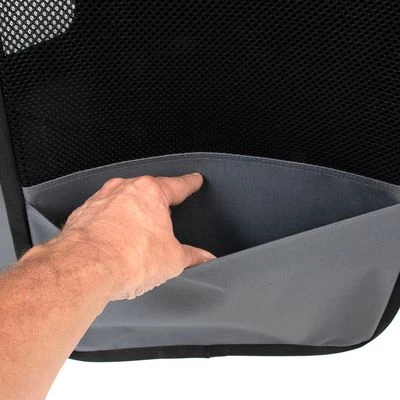 The high-quality nylon material is especially durable and can be wiped clean. The base is also attached by a zip fastening and is easily detachable, allowing you to remove it if your pets want to feel the grass beneath their paws. A special opening and attachment for a drinking bottle is provided, which is accessible from the outside at all times.