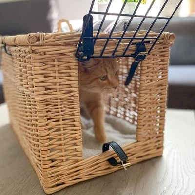 The wicker basket is made from willow, a renewable raw material, and is finished to a very high standard. It has a delightful natural look in a honey tone, and can be easily carried thanks to a handle on the roof. The lid of the basket opens up all the way, so you can gently place your cat inside and remove it again easily.