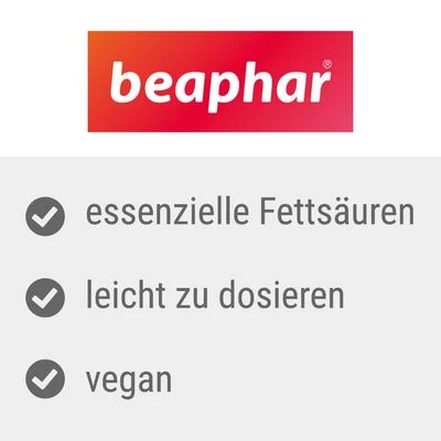 The beaphar linseed oil serves as a source of valuable essential fatty acids. It contains both omega-3 fatty acids in the form of alpha-linolenic acid and omega-6 fatty acids (linoleic acid), which can support the skin and coat, among other things. The vegetable oil as a food supplement is easy to dose and is suitable for daily administration.