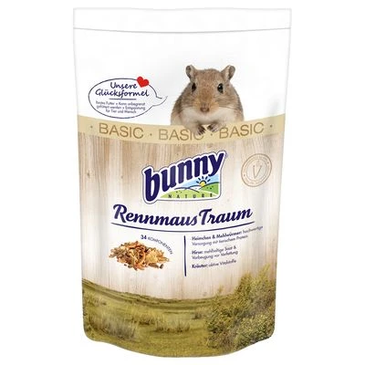 Bunny GerbilDream BASIC provides great all-round nutrition for your pet. This premium mix contains ingredients suited to the natural behaviour of your gerbil and it reflects the food that would be available in the deserts, semi deserts and steppes of Mongolia and North East China, the gerbil’s natural habitat. It is a balanced complete food, optimised to suit the gerbil’s digestive system, and it provides all the nutrients your pet needs. Carefully selected grain and seeds are enriched with herbs and vegetables and supplemented with crickets and meal worms, an important source of protein and a tasty addition.