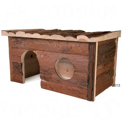 Wooden cabin for small pets, roof also functions as a place to relax and have fun