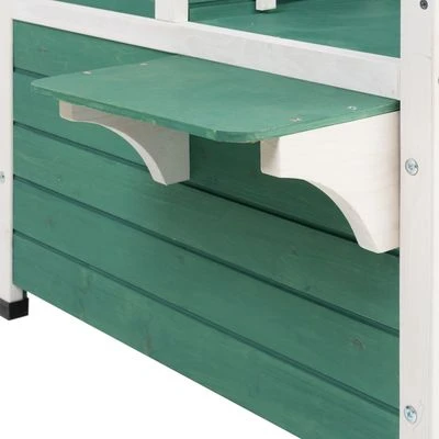 Add a touch of southern flair to your garden, patio or home with this Cat House with Sunroof. It features a green and white lacquered façade, with a linear two-storey design and a cute veranda, giving the Cat House with Sunroof the look of a Mississippi house. It is designed to boost your pet’s wellbeing and offers your cat a cosy hideaway. The Cat House with Sunroof features two dens that act as a great place to relax with all-round protection. The weatherproof covered veranda on the upper level also provides a great place to watch the world go back, take in some sunshine and generally relax.