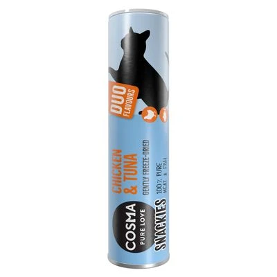 Cosma Snackies DUO cat snacks are a unique product with a very special, natural taste experience which your cat will adore.