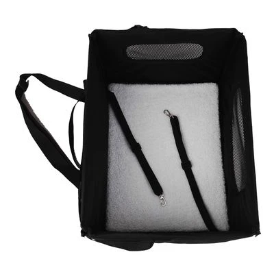Foldable car seat for small dogs. With a reversible plush cushion and practical strap fastenings to help keep your dog safe while travelling.
