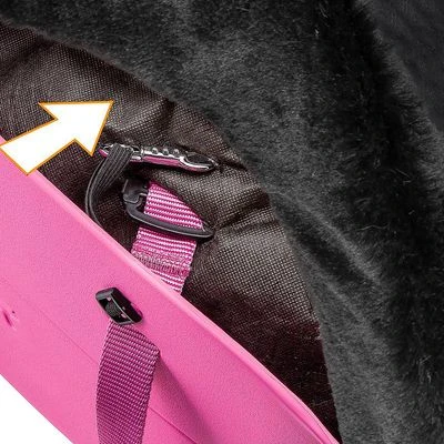 The name “With-Me” is designed to highlight the fact that your beloved pet can now always be by your side. The adjustable carry strap allows you to carry this elegant, black bag with white plush border either by hand or on your shoulder. The inside features a cuddly inlay that offers your cat or dog a soft, comfortable space to relax. The Ferplast With-Me Carry Bag is also easy to care for, with a removable textile cotton inside layer that can be washed. The outer material is waterproof and easy to clean. Inside the Ferplast With-Me Carry Bag there is a short lead with carabiner clip that can be easily attached to your pet’s collar to keep it securely inside the bag.
