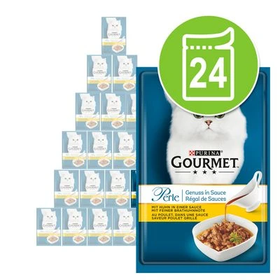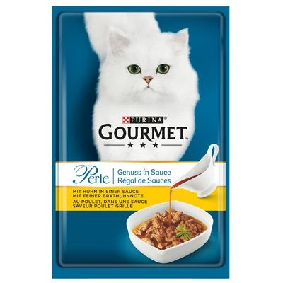 Created especially for gravy-loving cats! Gourmet Perle Gravy Delight is a delicious wet food combines tender strips of meat and fish in generous amounts of gravy. Spoil your cat with either chicken, beef, salmon or tuna pieces in lots of gravy, gravy, and lots more gravy!