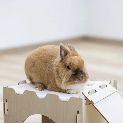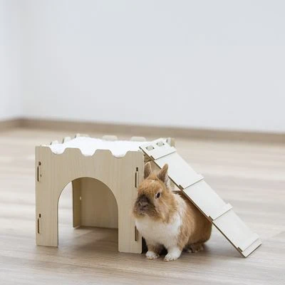 The Kerbl rodent castle not only offers your rodent a comfortable place, it also looks really nice: With its very special castle-style design, it is a real eye-catcher in any small animal enclosure! Thanks to the clever plug-in system, it can be assembled and disassembled in no time at all and is also safe and stable. The splinter-free wooden surfaces can be cleaned by simply wiping them clean.