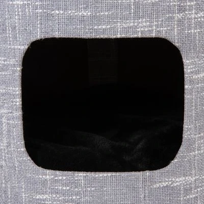 A fab stool & den combo! This modern cat den is covered in a funky, woven fabric. The cosy den has a padded roof to lie on and a removable plush cushion inside. Load-bearing up to 80kg. Colour: grey.