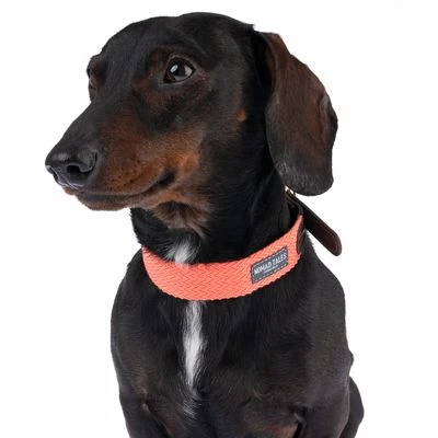 The coral-coloured band with its distinguished chevron pattern is not only pretty, but also light and comfortable to wear. The adjustable strap is made of animal-friendly vegan leather. The material mix is aesthetically completed by the noble-looking metal elements in matt gold. Of course, your four-legged friend shouldn’t have to worry about his fine accessory getting dirty while playing and exploring. And it doesn’t have to, because the entire collar can be washed in the washing machine and will look like new again.