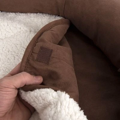 The soft and cuddly cover of the Oval Memory Foam Dog Bed is completely removable from the visco-elastic mattress and can be hygienically cleaned in the washing machine. The easy-care blanket, with warming sheepskin on one side, fastens easily to the bed with Velcro and can be quickly cleaned when needed. The thickness of the mattress allows for a raised entry that is particularly suitable for older dogs.