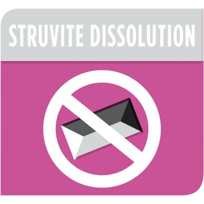 - Regulates urinary environment: uric acidifying ingredients help to promote optimal urine pH, can help to dissolve existing struvite stones