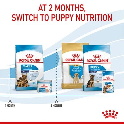 Royal Canin Maxi Starter Mother & Babydog has been specially developed to meet the nutritional needs of pregnant dogs and their puppies. The recipe is ideal for large adult dogs weighing between 26-44kg during the final third of their pregnancy, as well as for weaning their puppies to the age of 2 months. As large dogs often have bigger litters, with sometimes more than 10 puppies, their metabolism has more work to do.