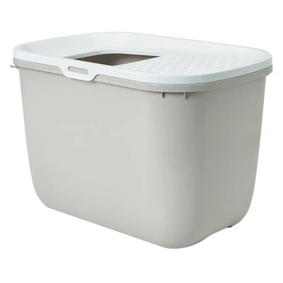 A spacious litter box with a generous top entry and a specially perforated and removable cover. This leak-proof litter box is easy to clean and ideal for larger cats, allowing space to move around.