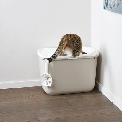 - Ideal even for larger cat breeds: a spacious tray with a large top entry