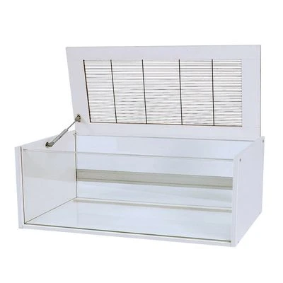 - Hinged roof: with gas pressure spring, large mesh window, easy access to the animal and for cleaning the cage