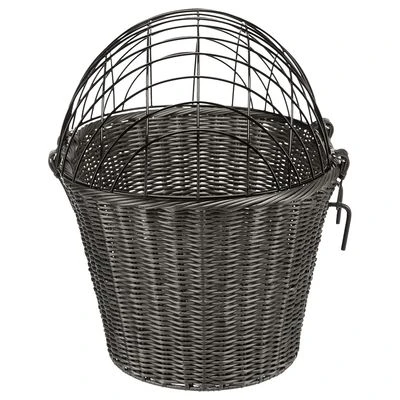 Practical front-mounted bicycle basket made from poly ratten, for small dogs, attaches to the handlebars, plastic-coated wire mesh cover, cushion included, colour: grey, maximum weight capacity: 5kg