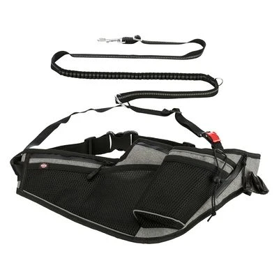 Trixie Jogging Belt with Leash – Grey/ Black at a glance: